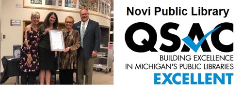 The Library of Michigan has awarded NPL a certificate of completion for meeting the Excellent Level of the Quality Services Audit Checklist (QSAC)! Out of over 400 public libraries in Michigan, the Novi Library was the first of two in Michigan to receive this certification! More information.